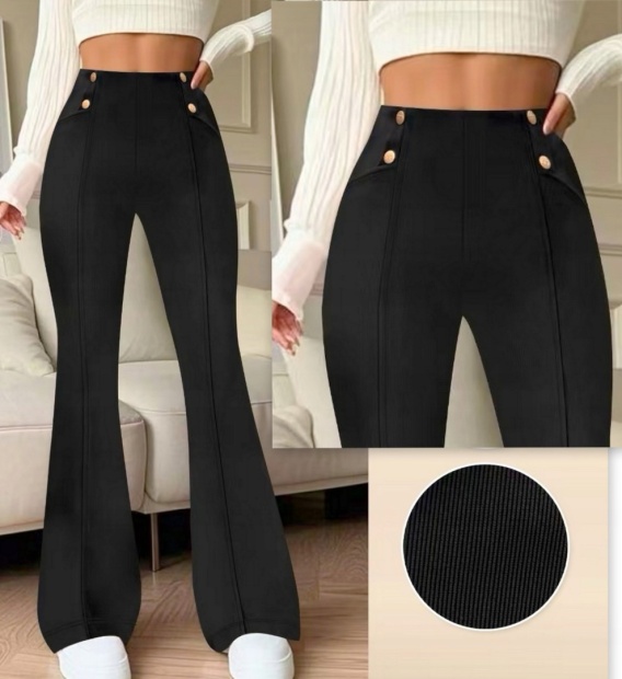 Stylowe i wygodne spodnie damskie z wysokim stanem, które pięknie podkreślają sylwetkę. Model lekko ocieplany, idealny na chłodniejsze dni. Wykonane z elastycznego materiału w prążek, dzięki czemu świetnie dopasowują się do figury i zapewniają komfort noszenia.