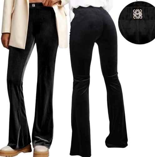 Miękki, welurowy materiał zapewnia przyjemność noszenia, a rozszerzane nogawki dodają szyku i podkreślają sylwetkę.